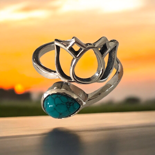 BAGUE ARGENT 925 RÉGLABLE TURQUOISE DE CHINE AAA